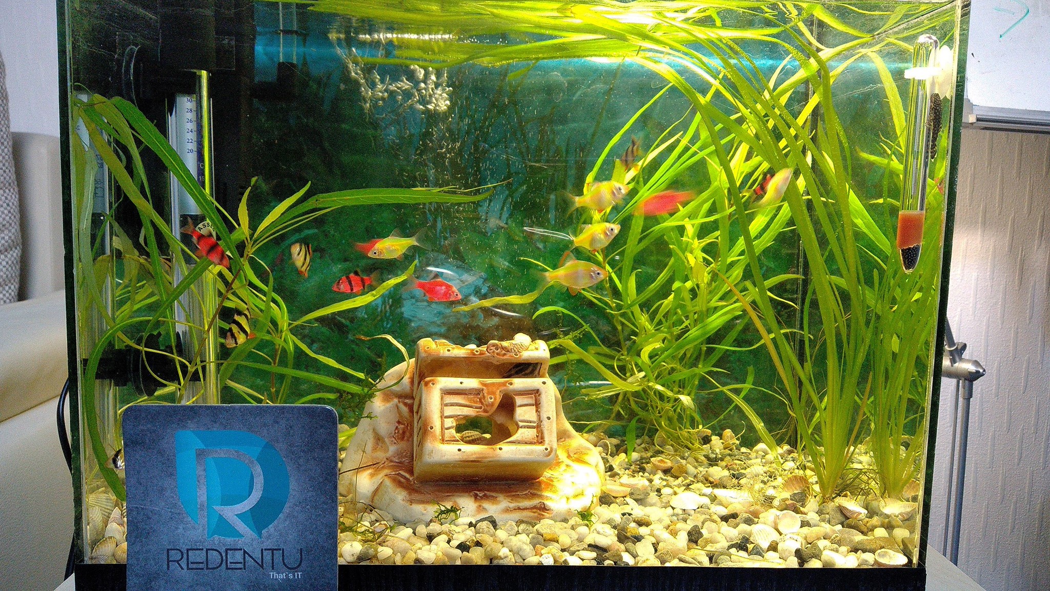 Colleagues often gathered in the recreation room to play sports, talk or simply relax on the sofa next to the fish in the aquarium or play games.